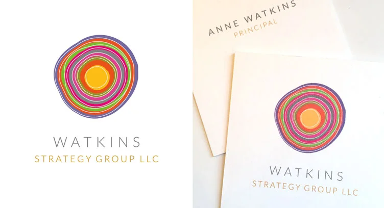Watkins Strategy Group provides a wide range of consulting services ranging from executive coaching services to organizational development. With their core values of hard work, social justice, creativity and leadership, the New Haven-based firm needed a logo that reflected the dynamic nature of their work and their clients. Using tree rings as an inspiration, Brooklyn Twinkle developed a mark that is bold, expanding, organic and strong.